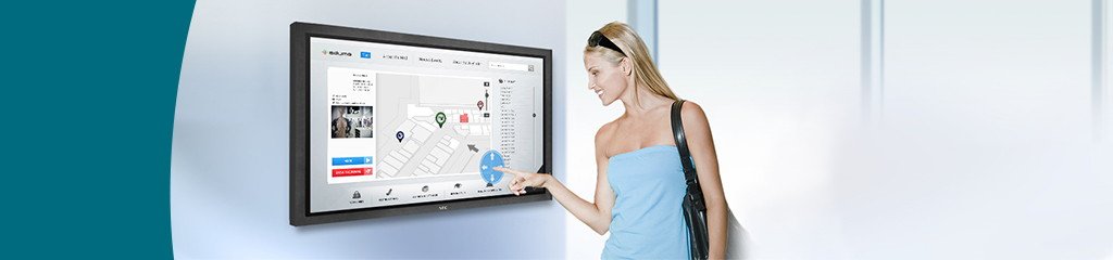 The new NEC P Series multi touch displays are ideal for any kind of 24/7 interactive retail signage, way finding and kiosk applications as well as for interactive white-board usages in meeting rooms and class rooms.
