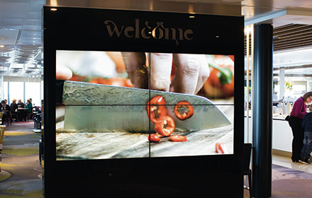 NEC’s displays are used for all information and communication aboard Viking Grace. The content is adapted based on the location of each screen so that it is always relevant. For example, at Frank’s restaurant there will be menus adapted according to what is available and the time of day.