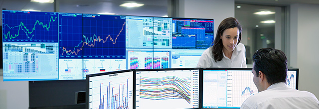 Financial and insurance businesses depend on the efficient analysis of huge amounts of real-time economic information in order to facilitate timely decision-making. With visualisation solutions from Sharp you can rely on the accurate and precise reproduction of vital information and real-time stock exchange data, the visual interface between traders and the global markets.