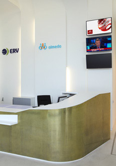 The majority of the displays are deployed in conference rooms where they are used for presentations or video conferences. Monitors were sought which, along with a sophisticated design, were able to provide richly detailed pictures in full HD quality. The MultiSync® P series from NEC Display Solutions is ideally suited to this and also provides optional loudspeakers to ensure rich sound. With DVI, HDMI and DisplayPort interfaces, the LCDs are designed for all media servers. For a high level of reliability, the NEC models also have a multi-stage intelligent temperature control, which provides sufficient cooling for the display when needed. Two fan speeds can be selected, especially for use in conference environments. The noise level produced in the meeting room is almost inaudible due to the low speed of rotation. When lighting conditions are continuously changing, such as in the central reception area of the Kustermann Park building for example, variations in display quality can occur in spite of using a high-quality monitor. The three NEC MultiSync® P401 LC Public Displays fitted here benefit from a further intelligent feature - the Ambient Light Sensor.